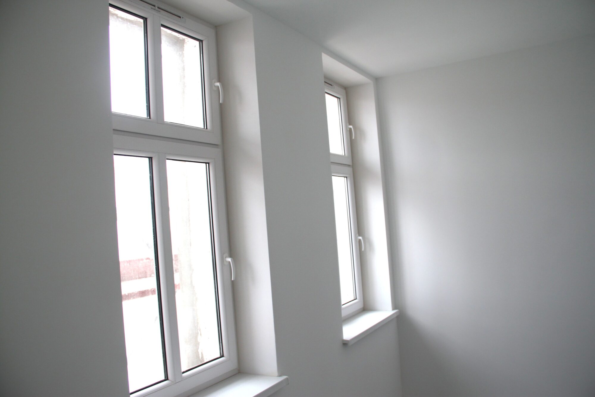 Stolarka okienna jest oczywiście pvc, drzwi wejściowe dwuzamkowe, a w łazienkach zamontowaliśmy stelaże do zabudowy – przygotowane pod wiszące misy WC. Ściany gładkie, malowane na biało – nie wymagają kolejnych inwestycji. W pokojach zamontowane zostały grzejniki płytowe, a w łazienkach drabinkowe. Nowe instalacje elektryczne i internetowe doprowadzone są do każdego mieszkania. Założony biały osprzęt elektryczny.