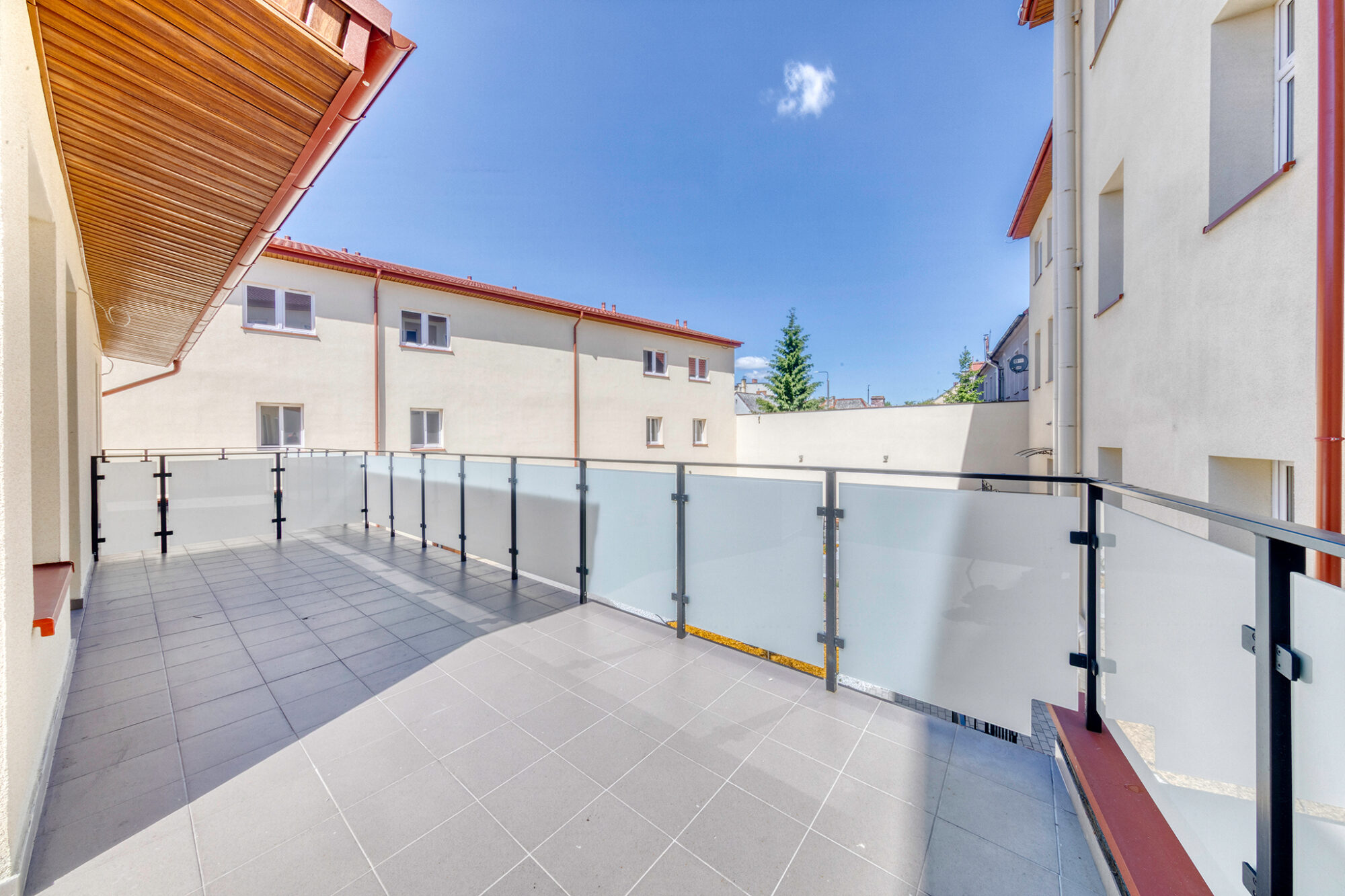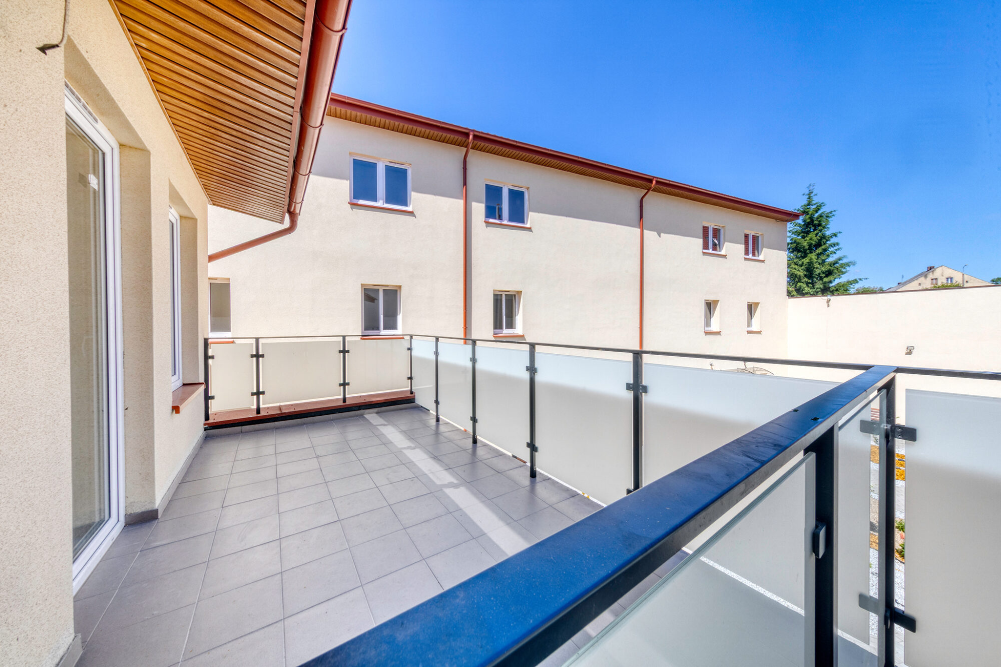 Podwórko pomiędzy budynkami jest dostępne tylko dla mieszkańców osiedla i wyposażone w część wypoczynkową: ławki, chodniki z kostki brukowej, nasadzenia oraz piaskownicę. Nowoczesne i szerokie klatki schodowe gwarantują wygodę bezpieczne użytkowanie.