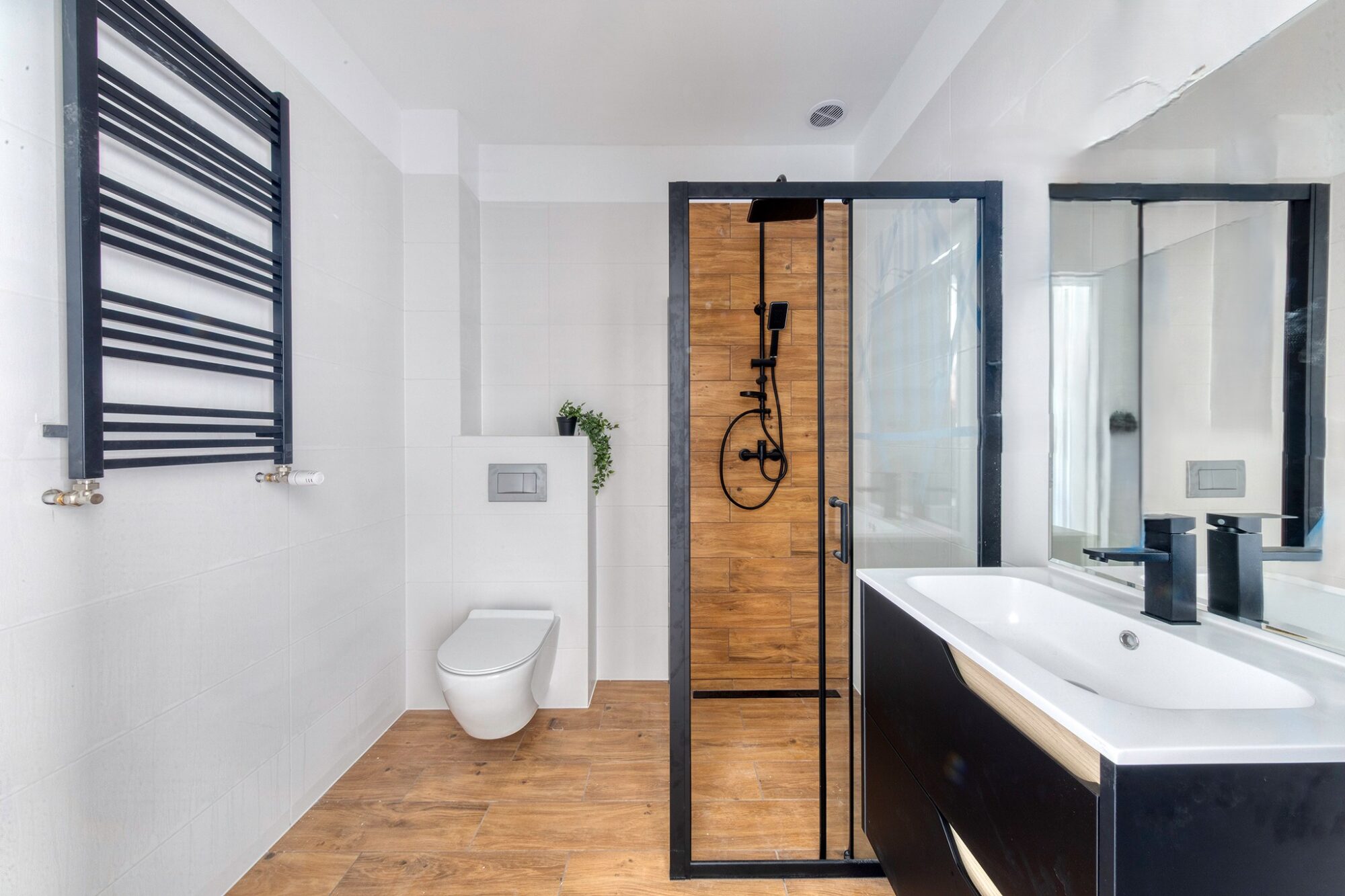 Stolarka okienna pvc, drzwi wejściowe dwuzamkowe a w łazienkach zamontowane są stelaże do zabudowy pod wiszące misy WC. Ściany gładkie, malowane na biało – niewymagające kolejnych inwestycji. Zamontowane grzejniki płytowe, a w łazienkach drabinkowe. Nowe instalacje elektryczne i internetowe doprowadzone są do każdego mieszkania. Założony biały osprzęt elektryczny.
